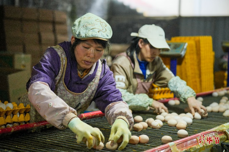 一枚小小的鸡蛋,同时完成“出山”与“驻乡”的双向旅程,并成为带动就业、联结利益的乡村振兴关键一环。公司优先吸纳周边的劳动力,为40余名群众提供就业岗位,员工月均收入在4500至5500元。此外,公司还通过流转农户土地和入股分红等方式,增加当地群众收入。
