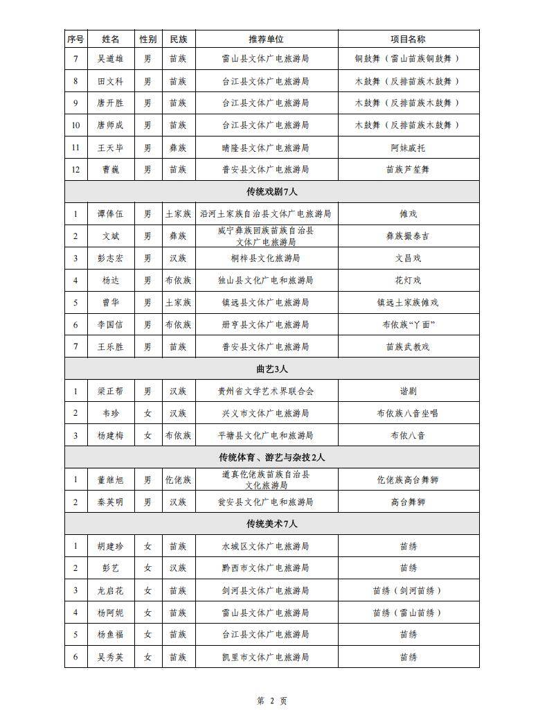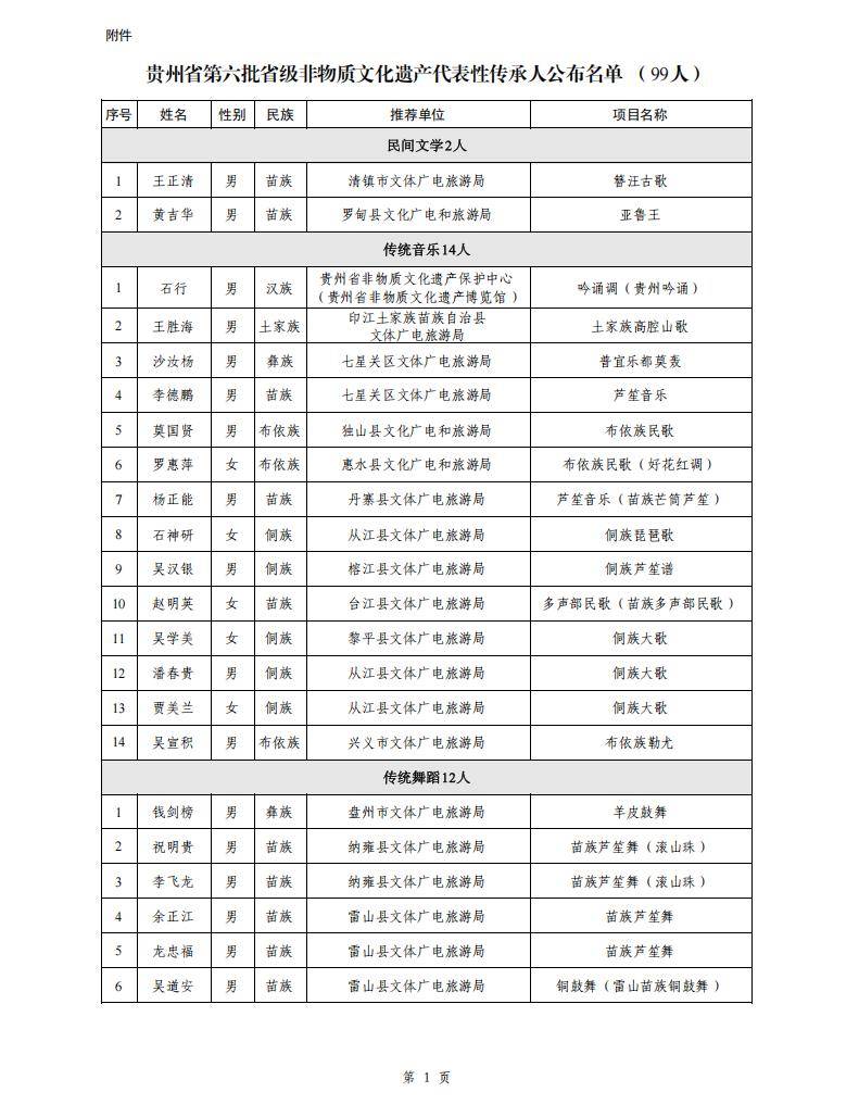 附件:贵州省第六批省级非物质文化遗产代表性传承人公布名单(99人)