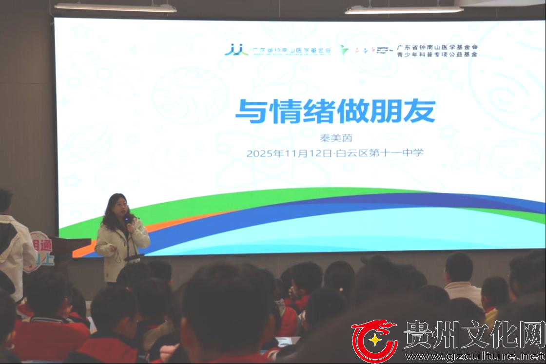 贵州文化网讯(蒋泽南)为进一步推动和深化东西部社会组织交流互访,共同推进东西部协作公益活动高效实施,助力乡村振兴,11月11日至12日,广东省钟南山医学基金会联合贵州省人口健康基金会等单位在白云区第二十小学、第十一中学开展2025年“心桥相通”青少年心理健康公益活动,为1800余名师生带来了一场全方位、沉浸式的心理健康关爱之旅。