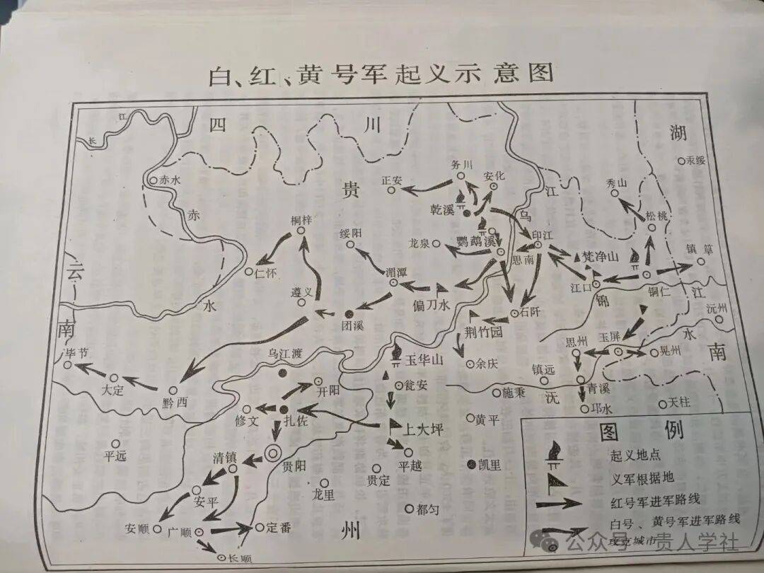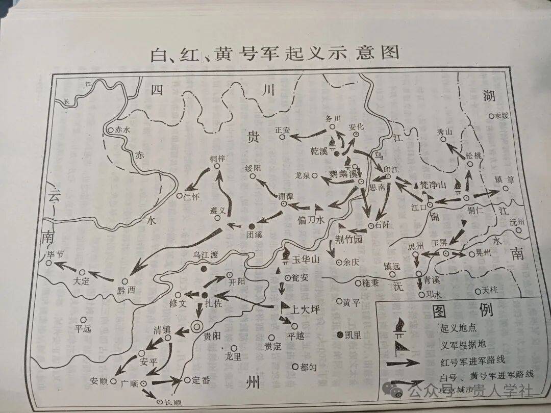 作为民族、族群成分最复杂、封建时代中央实控力量最薄弱的的省份之一,贵州各地爆发了反抗官府和清廷的暴动,影响深远的有何得胜领导的黄号军、徐廷杰领导的红号军、何冠一领导的白号军。以汉族为主体的号军,又称为教军,是白莲教支派灯花教传入贵州后组织起来的队伍,因成员以头巾为号,故被称为号军。烽火狼烟,从梵净山下的松桃、印江到乌蒙山上的黔西、大定、毕节,全黔无一完土,“几尽糜烂”。