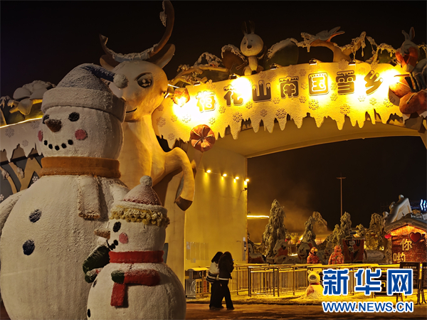 梅花山旅游景区为游客打造的“南国雪乡”夜景。新华网发(王杰玉 摄)