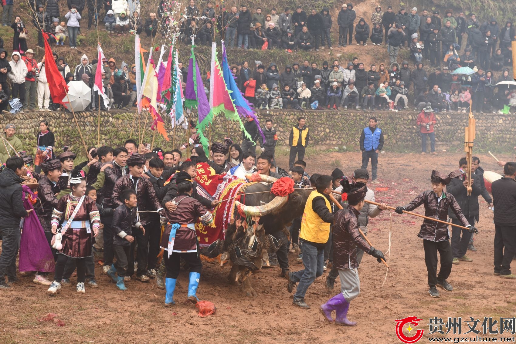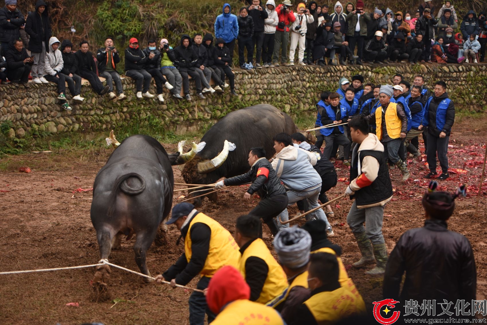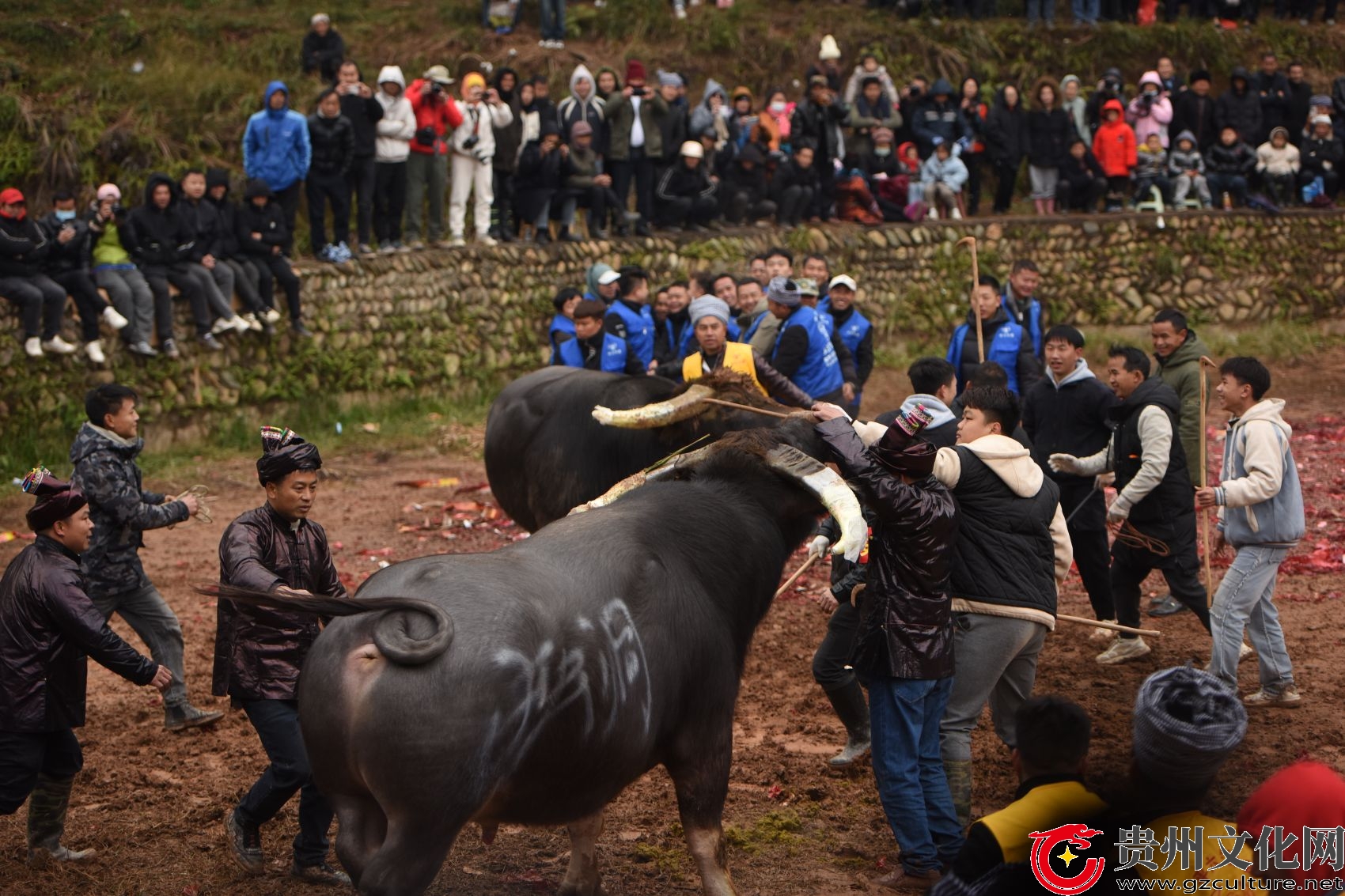 12月16日(农历十一月初四),正值黔东南苗族侗族自治州欢度侗年,贵州省从江县高增乡岜扒村平六斗牛塘举行传统民间牛王争霸赛活动。