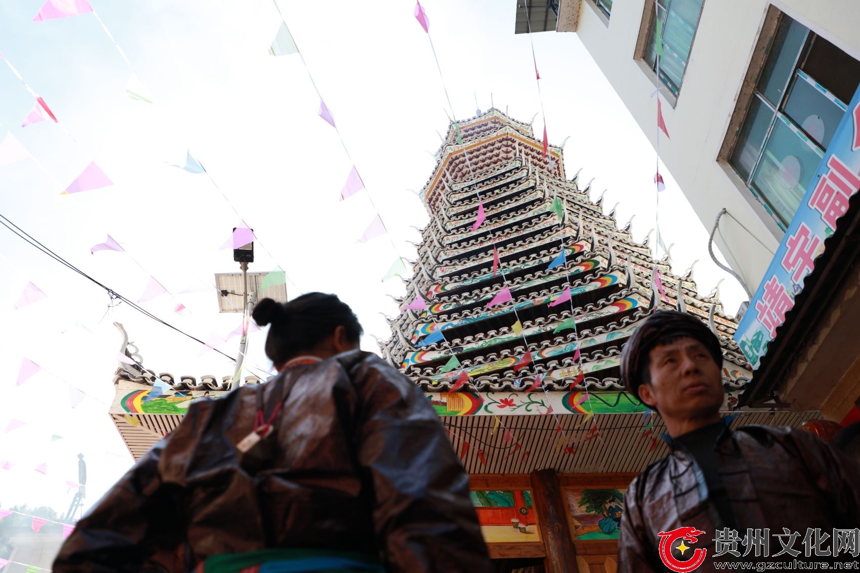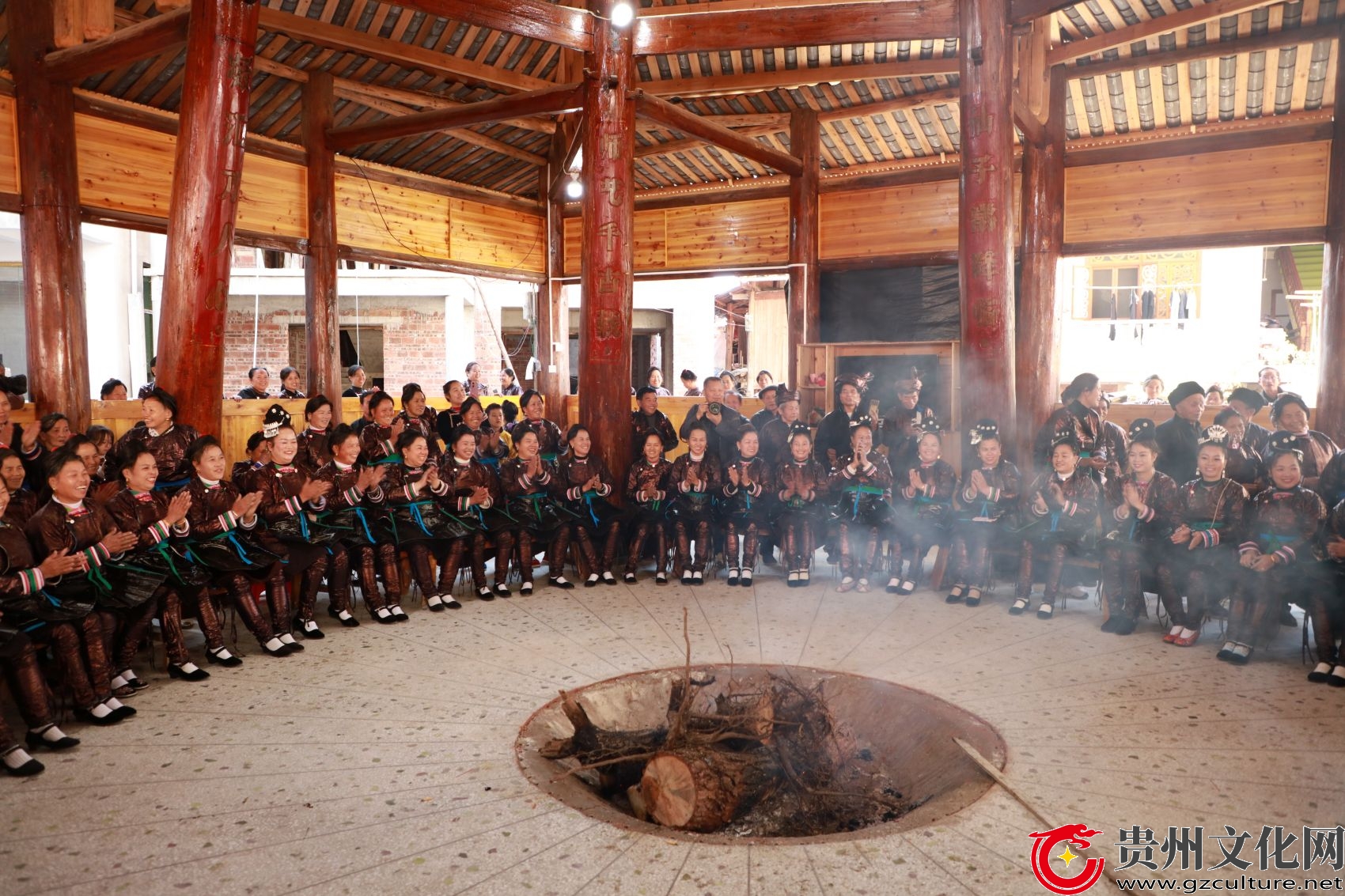 2023年11月20日,贵州省黔东南苗族侗族自治从江县高增乡高增村上寨鼓楼维修竣工庆典活动。周边村寨男女老少齐身着盛装纷纷前来,吹着芦笙、放着铁炮、唱拦路歌、手拉手哆嘎哆耶、踩歌堂、鼓楼下对唱侗族大歌同庆祝,同欢乐,场面热闹非凡。(梁辉波 摄)