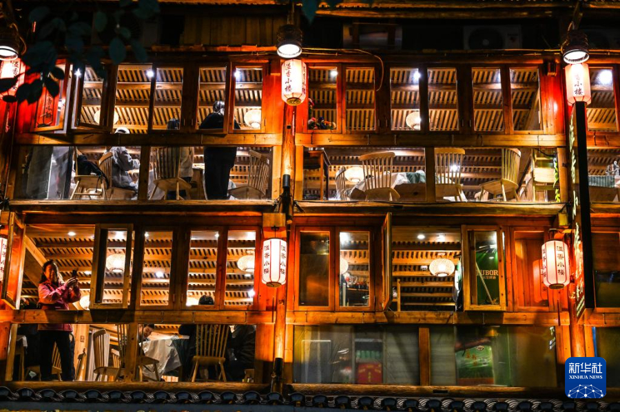 游客在贵州省黎平县肇兴侗寨一家餐厅就餐(12月19日摄)。新华社记者 杨文斌 摄