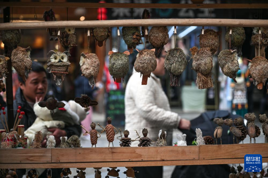 游客在贵州省黎平县肇兴侗寨选购文创产品(12月19日摄)。新华社记者 杨文斌 摄