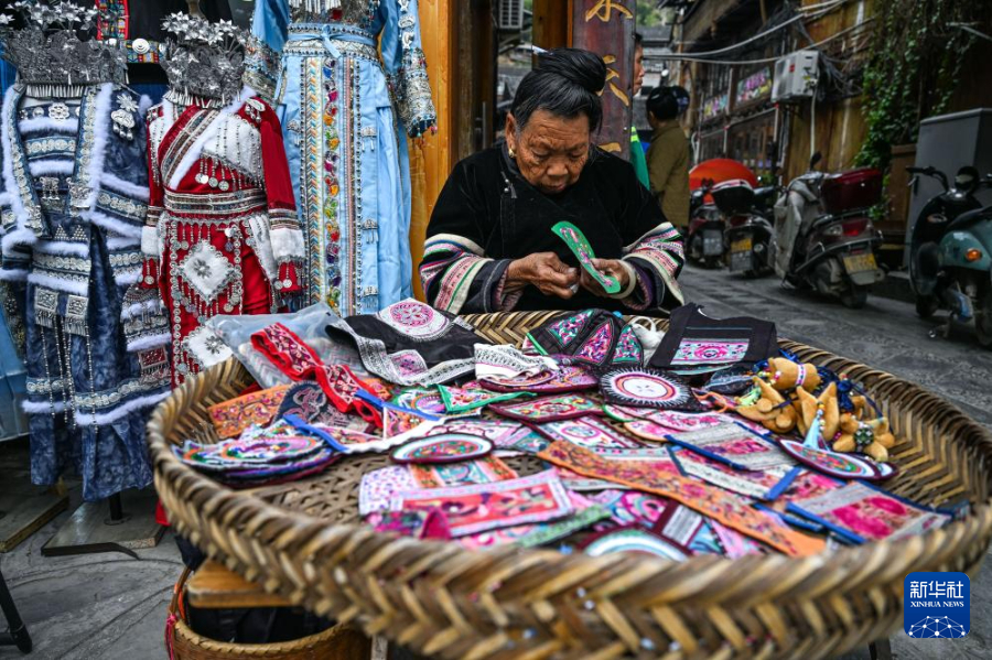 贵州省黎平县肇兴侗寨的村民在刺绣(12月19日摄)。新华社记者 杨文斌 摄