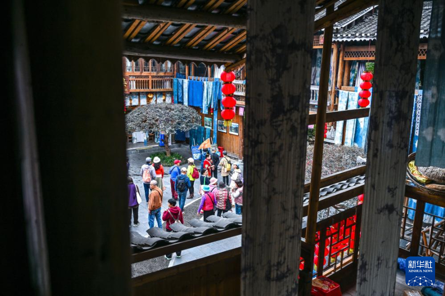 游客在贵州省黎平县肇兴侗寨侗品源传统工艺农民专业合作社参观(12月19日摄)。新华社记者 杨文斌 摄
