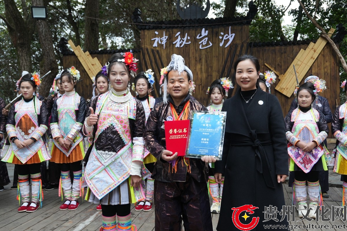 访问期间,为感谢吴高书对从江文旅资源的深度体验与真诚推介,从江县委宣传部、从江县文体广电旅游局在岜沙苗寨现场共同为吴高书举行了“从江文旅推荐官”聘任仪式。 仪式上,两部门负责人共同向吴高书颁发了精美的聘书,正式赋予其推介从江文化旅游的官方身份。与此同时,岜沙寨老也遵循古老传统,授予其“荣誉村民”称号。这一现代聘书与古老荣誉的交汇,不仅定格了文化交融的珍贵瞬间,更象征着从江以开放姿态拥抱新传播力量、推动文旅创新的决心,为后续的区域合作奠定了坚实基础。