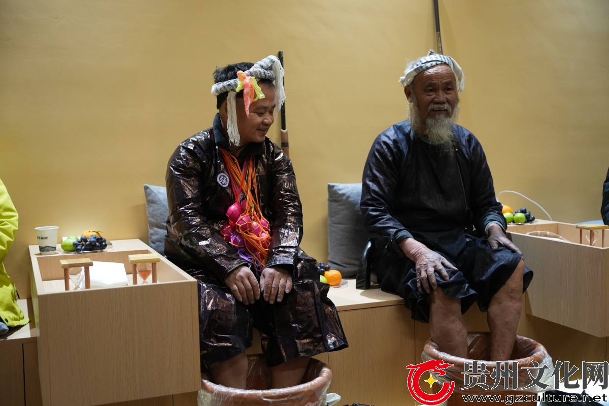 在岜沙,吴高书完成了一次全面的文化沉浸。上午,他在“喜在侗家”品尝了以从江香猪、腌鱼腌肉等为代表的从江美食“八大金刚”和“十二金钗”传统盛宴;下午,他换上岜沙服饰,体验了拦门酒、红蛋礼,并在寨老主持下参与了庄严的祭树仪式,感悟岜沙人“以树为神”的生态生命观。在陈列馆获赠象征部落文化的道具鸟枪,在祖母石旁观摩织布纺纱与竹编技艺,在东方坡以倒走仪式致敬苗族先祖的迁徙史诗。他还积极参与民俗互动,扮演新郎、体验镰刀剃头,亲身感受非遗的鲜活魅力。