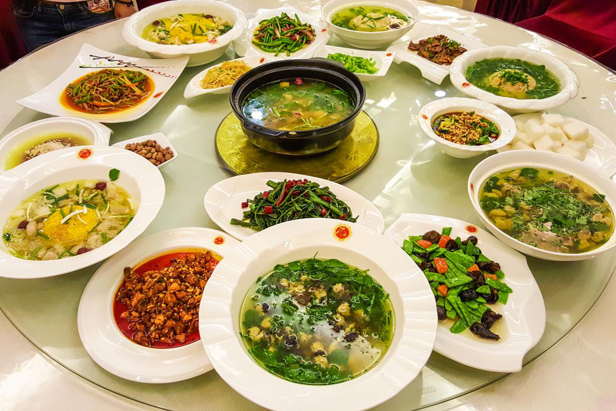 织金水八碗是最能展现织金当地物产丰富程度和烹饪技法的美食,所谓“水八碗”,则是由八道织金本地特色菜组成,相传“八仙”云游四海到织金,为救济苍生而发明的八道菜,分别为曹国舅烹蹄筋、吕洞宾薏仁米、汉钟离炖老鹅、蓝采和黑峰圆、铁拐李飞蛾蛋、韩湘子牵肠挂肚、张果老八宝饭和何仙姑酿鸡茸。