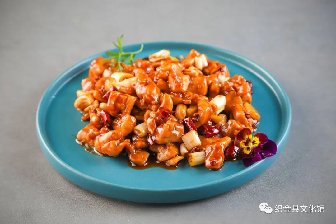作为宫保鸡丁的“原产地”,织金的宫保鸡丁选用本地鸡,配以油性较高的糍粑辣椒为原料,在技法上运用鲁菜勾芡和酱爆的做法炒制而成,织金本地的宫保鸡丁成品酸辣可口,辣椒在芡汁的调和下呈现温润的口感,成为织金美食的代表。
