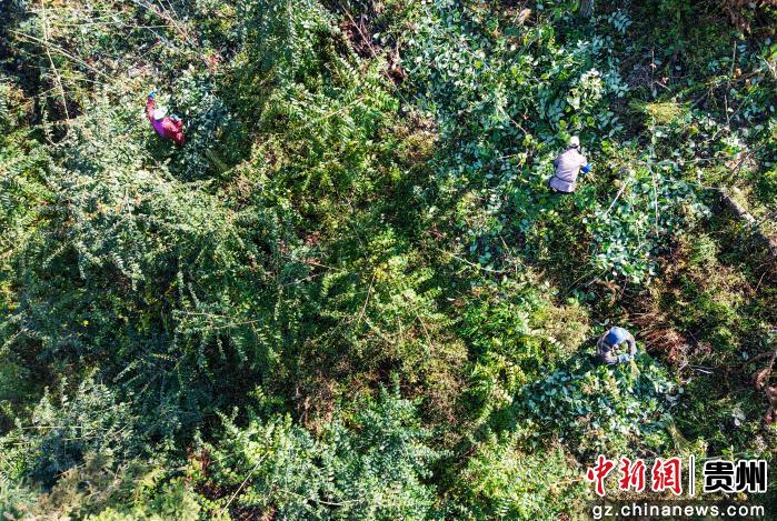 中新网贵州新闻12月8日电 (陈庆军 廖小勇)时下,正值钩藤采收季节。在贵州省道真仡佬族苗族自治县玉溪镇池村村,放眼望去,全村3800余亩钩藤连绵山坡地头,枝繁叶茂,藤条上挂满钩状果实。村民们穿梭其间,熟练地进行采摘、搬运一派繁忙的丰收景象。
