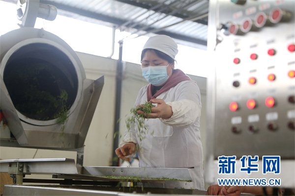 贵州野鹿盖茶业有限公司员工在加工茶青。新华网 周远钢 摄