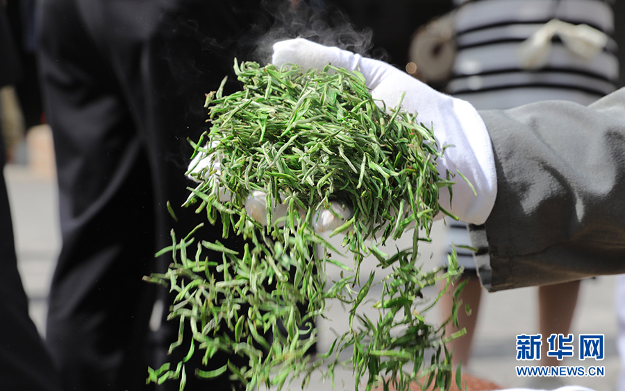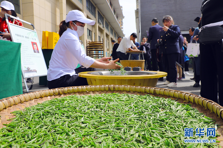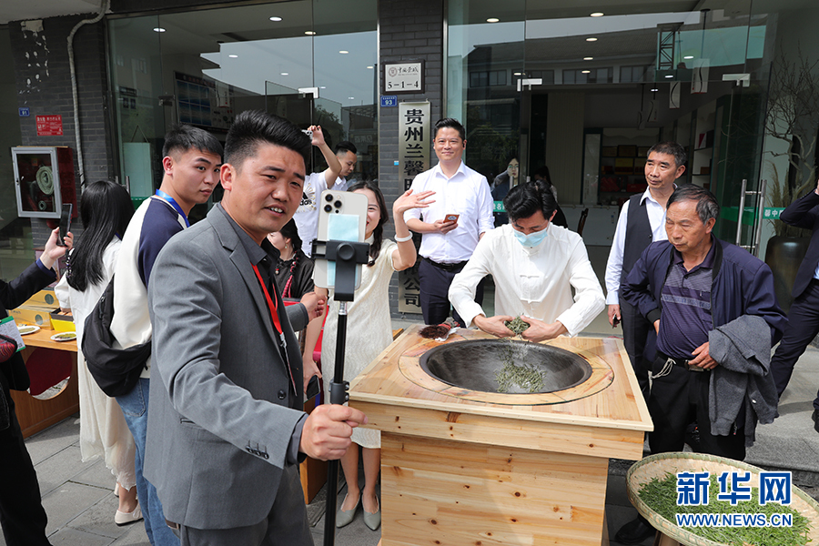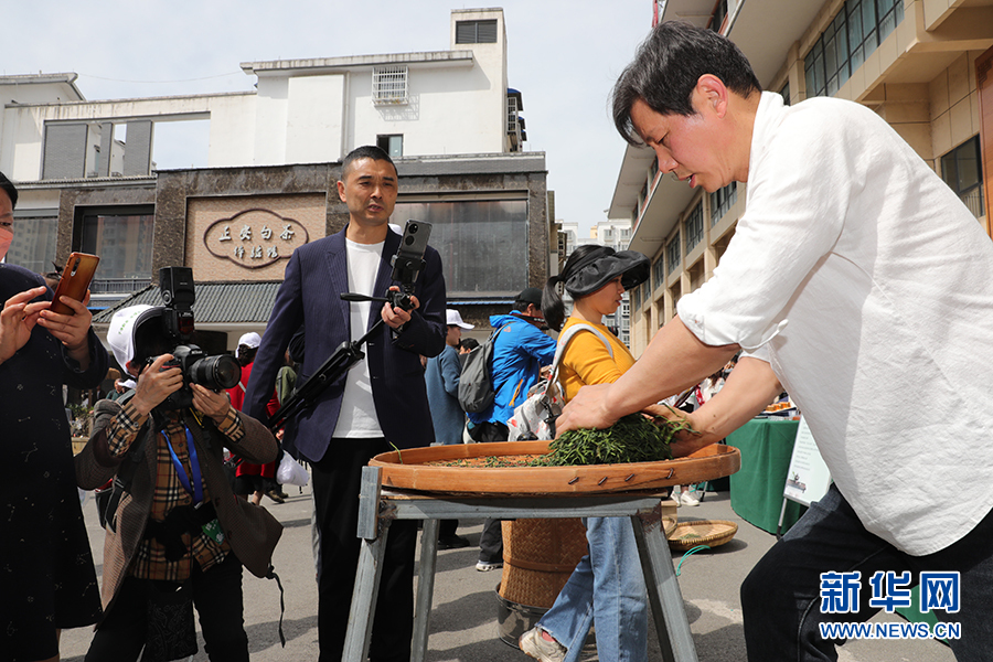 4月15日,茶博会的手工制茶活动引来网络主播关注。新华网 卢志佳 摄