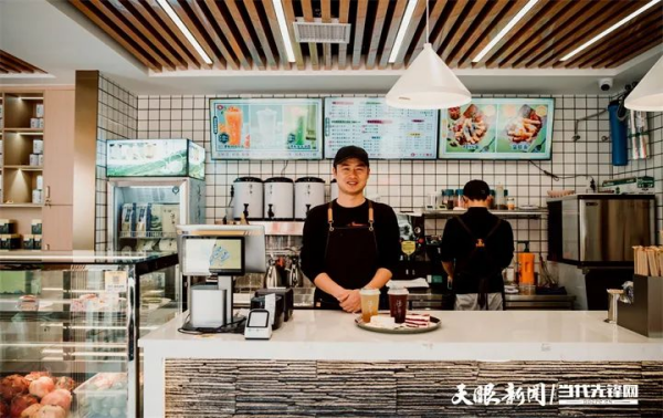 瀑布红茶冻、瀑布生打抹茶椰耶、红芯薯奶茶、金刺梨茶冻……具有安顺特色的茶饮品,让坐落在安顺市虹山湖公园的“贵州绿茶·瀑布茶馆”成为网红打卡点,广大市民和游客在散步公园时,前来品尝新式茶饮、购买安顺茶。