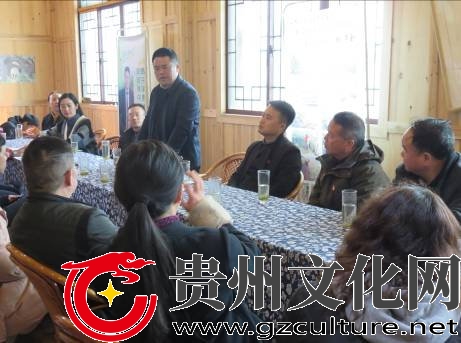 图为国家级非遗“都匀毛尖茶制作技艺”代表性传承人张子全向都匀市委宣传部一行介绍都匀毛尖茶制作技艺。(罗祖文 摄)