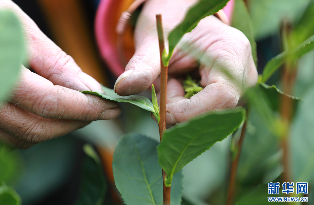1月1日,普安县当地茶农采摘绿茶新芽。新华网 卢志佳 摄