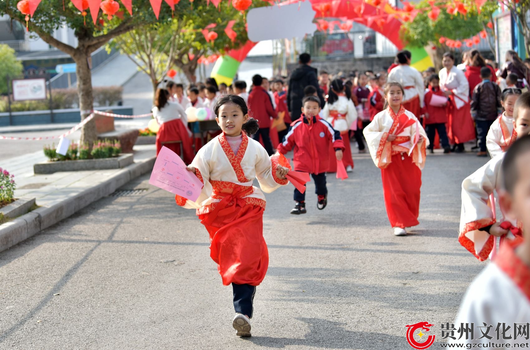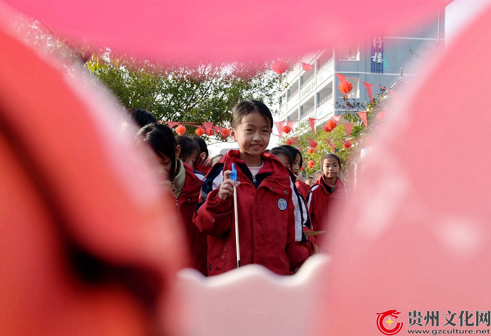 1月16日,贵州省从江县城关第四小学一年级和二年级学生在参加期末趣味闯关活动。(龙梦前 摄)