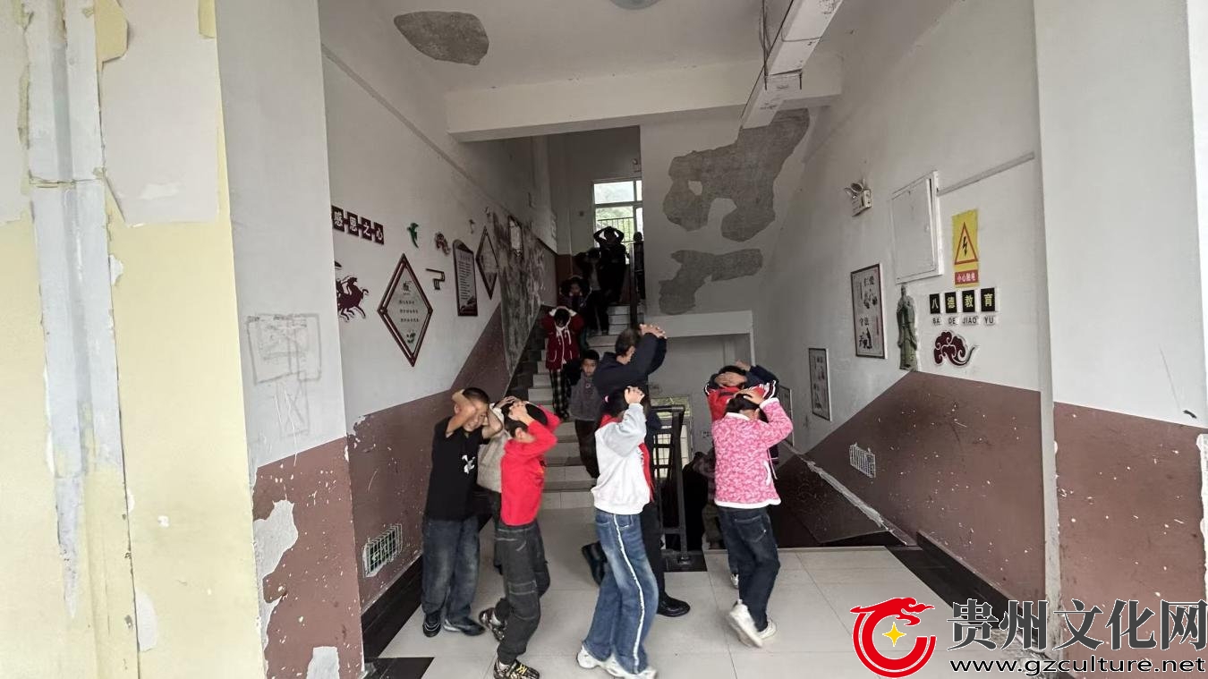 消防演练结束,防震减灾应急模拟演练随即启动。校园内防震警报声响起,正在上课的师生立即按照“躲、护、逃”规范动作,迅速躲到课桌下方,双手抱头、弯腰屈膝,做好自我防护,各班级在教职工引导下,沿指定路线快速撤离至安全区域,全程动作迅速、秩序井然。