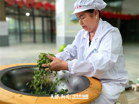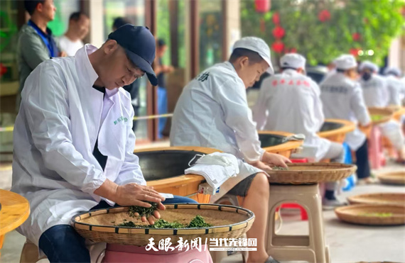 “杀青讲究高温、快速、均匀,这一锅下去,香气和口感就定型了。”现场,有着20余年制茶经验的老匠人王绍明一边精准控制火候,一边向记者传授诀窍。而他身旁,不少选手则精准控制杀青温度,用自己的“独家秘诀”,全神贯注地翻炒着锅里的茶叶。