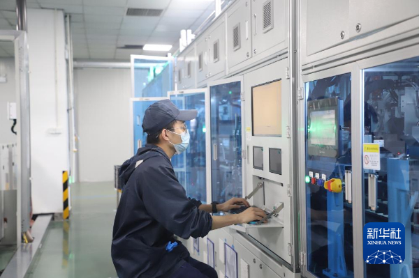 安徽池州高新区,池州市骏智机电科技有限公司的生产车间里,一片片新能源动力电池顶盖板平稳“走”下生产线。
