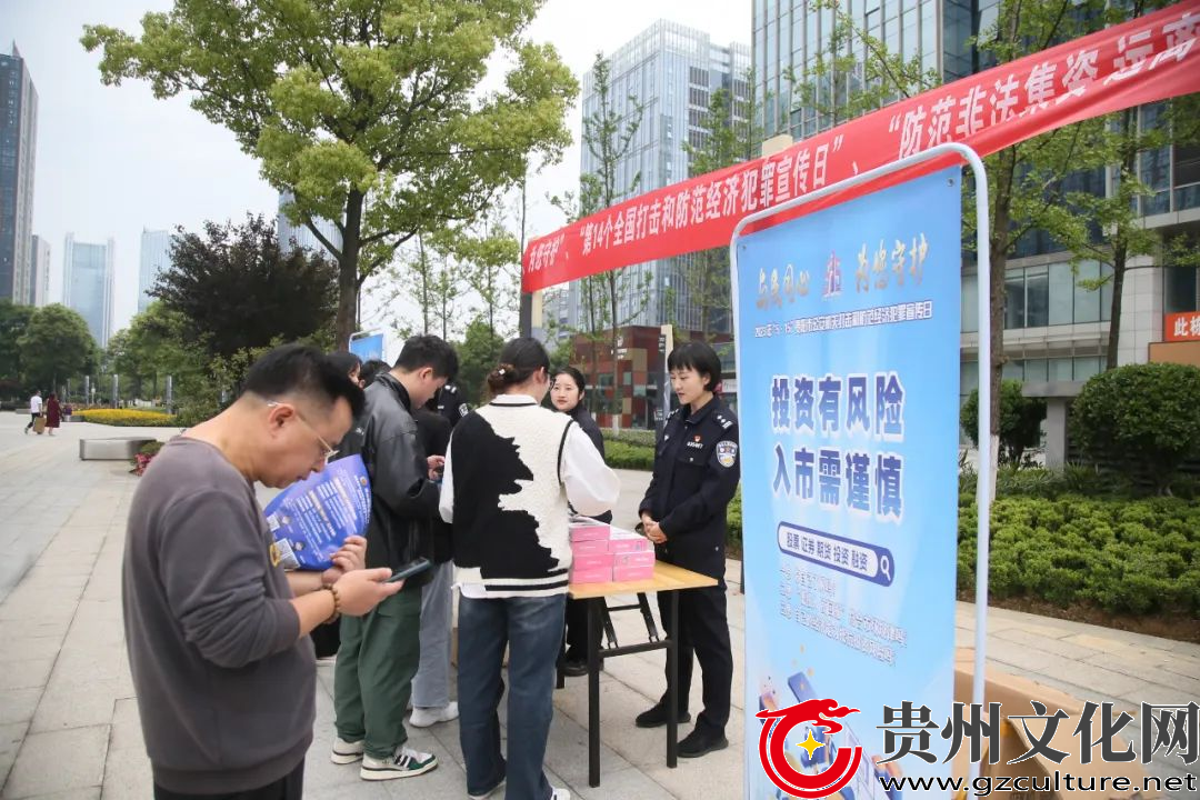 贵州文化网讯为进一步提升人民群众识别和防范经济犯罪的能力,增强打击和防范经济犯罪的意识,推动社会各界共同参与打击和防范经济犯罪工作。5月15日,贵阳市公安局观山湖分局经侦大队联合金华园派出所在辖区组织开展以“与民同心 为您守护”为主题的打击和防范经济犯罪集中宣传活动。