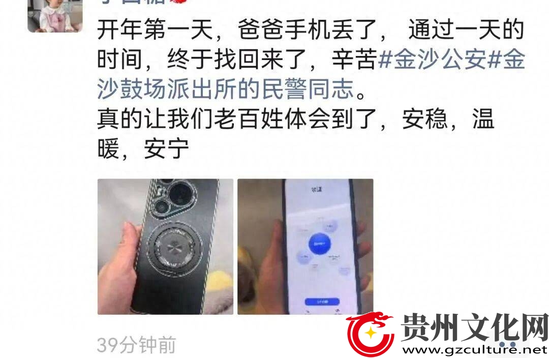 贵州文化网讯(冉静 黄虎)“真的让我们老百姓体会到了安稳,温暖,安宁!”2026年元旦的第一天,贵州省金沙县公安局鼓场派出所的民警们,收到了新年里最珍贵的一份“礼物”,来自白先生家属的暖心致谢。这几句朴实的话语,成了金沙公安新年收获的第一份好评,也让冬日的金沙多了一份警民连心的温情。