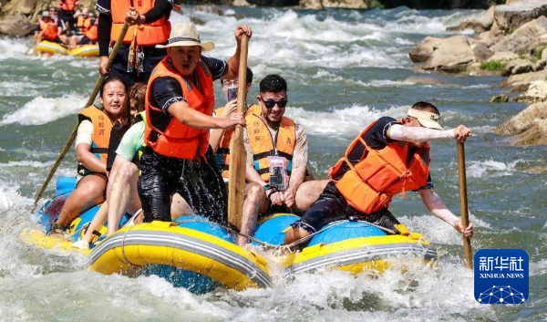多国在华青年在贵州省兴义市马岭河峡谷体验漂流。(受访者供图)
