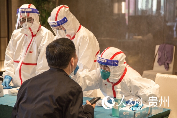 党代表们在驻地进行核酸检测。人民网 阳茜摄