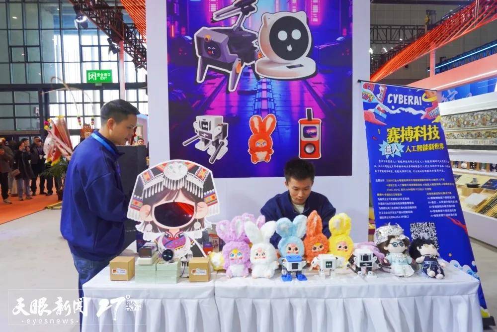 都匀市水家学会副会长侯圣存现场展示,将古老水书文字书写于纸面之上,与来往观众互动,引得观众好奇驻足;贵州万维赛博人工智能科技有限公司带来的AI功能植入玩具,让观众自主实现模型更换、对话定制和组装,产品的互动性与趣味性让不少年轻人点赞。这种传统与现代的碰撞,正是贵州文旅产业守正创新的生动缩影。