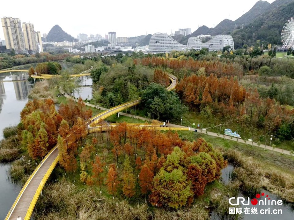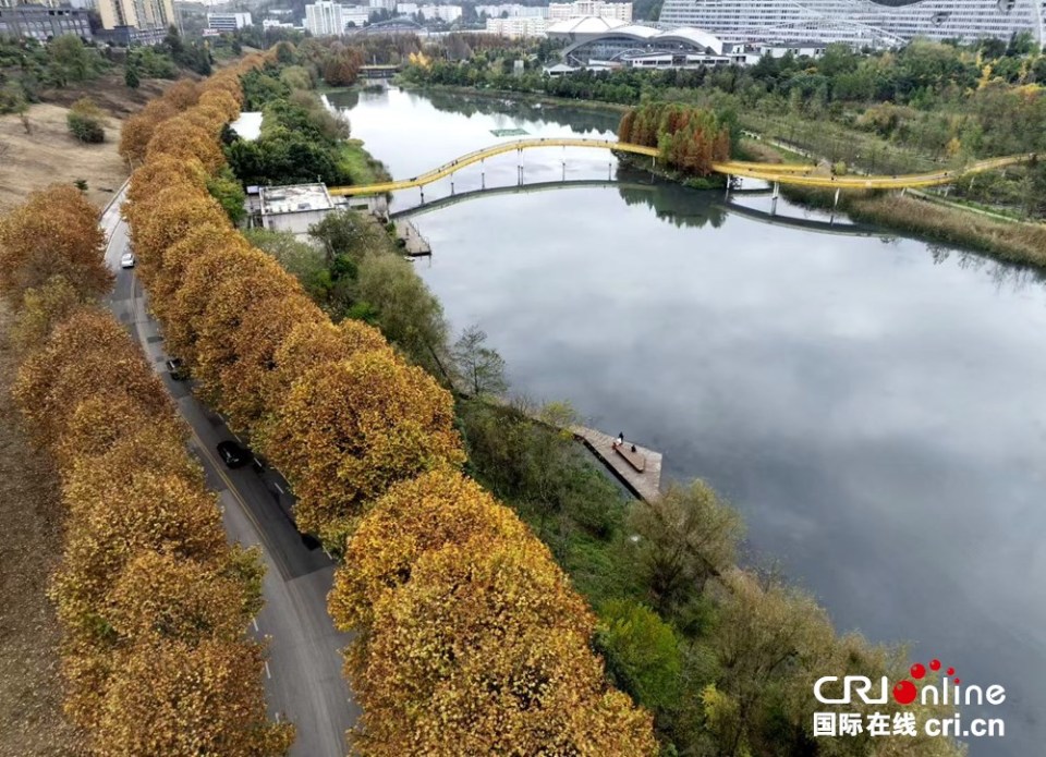 国际在线贵州消息(记者 杨展凌):11月21日,位于贵州省六盘水市钟山区明湖国家湿地公园之畔的六盘水师范学院校园内,一片金黄璀璨的银杏林宛如一幅绚丽的画卷,吸引了众多市民与学生前来打卡,记录这一美好瞬间。