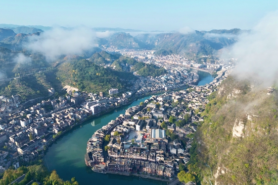 立冬后的㵲阳河,晨雾缭绕、碧水如镜,倒映着青龙洞古建群的飞檐翘角。贵州省黔东南州镇远古城的石板街上,广东游客黄倩一边用手机扫二维码听讲解,一边把刚买的苗绣香囊塞进背包。“夜游镇远像穿越到‘清明上河图’,白天游高过河又像闯进‘户外天堂’,一座小城竟能把历史与潮流混搭得如此自然!”