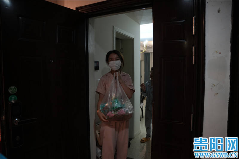 图为9月8日凌晨,志愿者将物资送到居民家中。