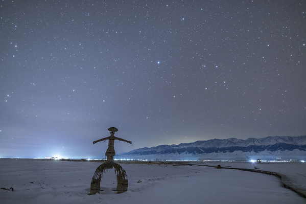 新华网哈密1月5日电(钟奕) 在巍峨的雪山、千年的胡杨、苍凉的沙漠、奇幻的雅丹之上,斗转星移,繁星流动。“暗夜”与“星空”,正是新疆哈密一种独特的美。