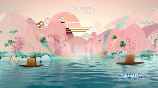 值得一提的还有《诗词来了》节目惊艳视听效果背后的创作巧思。节目通过3D技术缔造虚拟场景,打造出充满童趣的剪纸艺术视觉奇观。节目通过3D虚拟技术复现传统诗词场景的同时,与现代美学和剪纸风格相融合,将原本平面化的剪纸元素,通过三维技术多层次叠加,形成全新的立体化视觉感受,场景图像之间的山水、荷花、沧海、梅花等诗词意象通过剪纸风格的艺术化,让整个节目更加生动丰富起来。