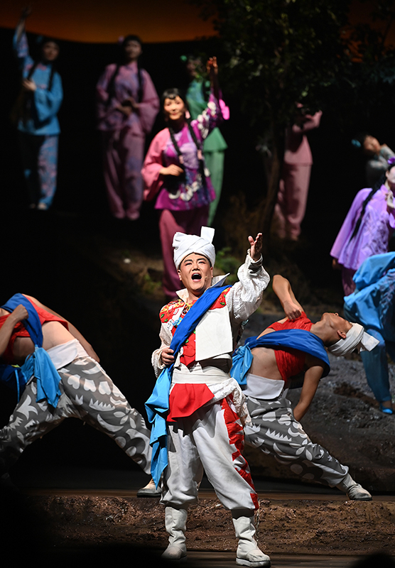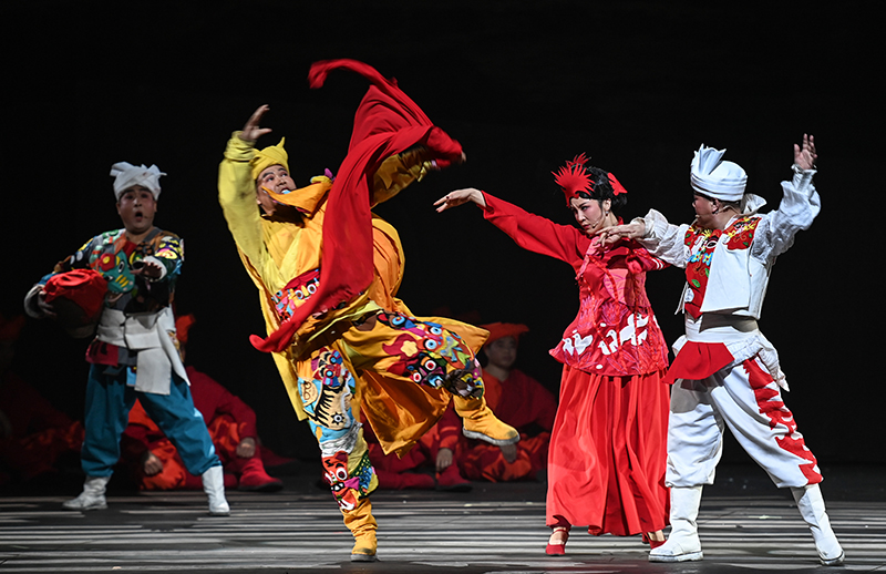 2月16日在首届中国非物质文化遗产保护年会展演活动上拍摄的陕北秧歌剧《米脂婆姨绥德汉》演出现场。