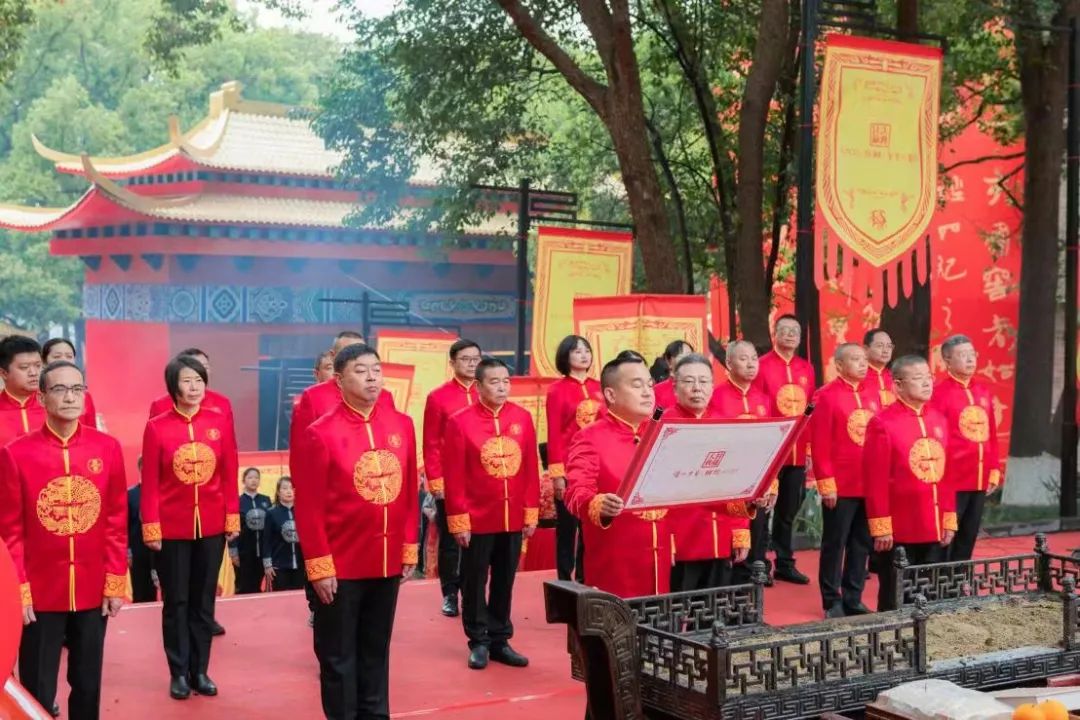 泸州老窖集团及股份公司党委书记、董事长刘淼诵读2023年泸州老窖·国窖1573封藏大典祭文。