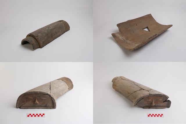 在2021年工作基础上的扩大发掘主要针对永巷东端和宫城轴线处。永巷东端的扩方,为确认北廊房、北排房的东端和这一部分永巷的走向、宽度等提供了重要信息。永巷在北廊房东端呈曲尺形折拐,宽度由6.5米扩大到11米。此处还发现一座门址,为南北两间进深的单门道结构,门道宽4.8米、两间进深共4.2米。该门址与东侧夯土墙起到了控扼永巷南北交通的作用。基于北廊房和北排房东端的确认,可复原知其东西总长约320米,与太极殿宫院东西面宽基本一致,且轴线位置的发掘未发现南北向穿越永巷的门址。据解剖显示,魏晋永巷与北魏永巷结构相似,均为两侧夯土墙夹建形成通道,魏晋通道略窄,宽约4米。此外,在永巷东北角的发掘中,还在北魏遗迹面下发现一曲尺形夯土墙和一半地穴式砖砌方池,这两处遗迹打破魏晋铺砖地面,出土了较多特征极为鲜明的十六国时期板瓦、筒瓦、半人面截角檐头筒瓦、“富贵万岁”瓦当等(图1)。通过上述工作了解了始建于魏晋时期的永巷建筑的形制演变,并在解剖中发现和确认了十六国时期的建筑遗存,极大丰富了汉魏洛阳城的历史文化内涵和遗物编年。