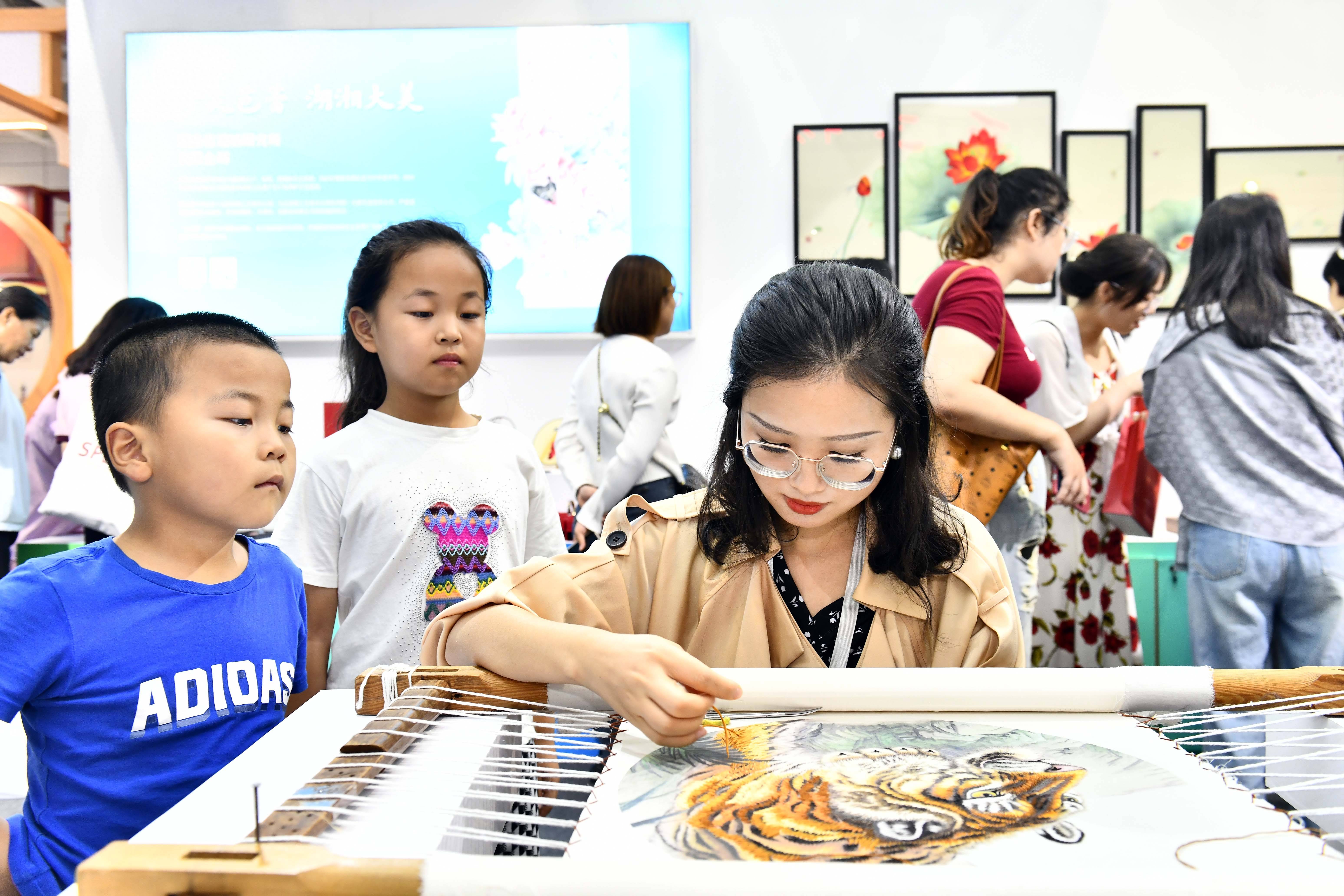 9月16日,在山东国际会展中心,来自湖南的非遗传承人现场展示湘绣技艺。 新华社记者 郭绪雷 摄