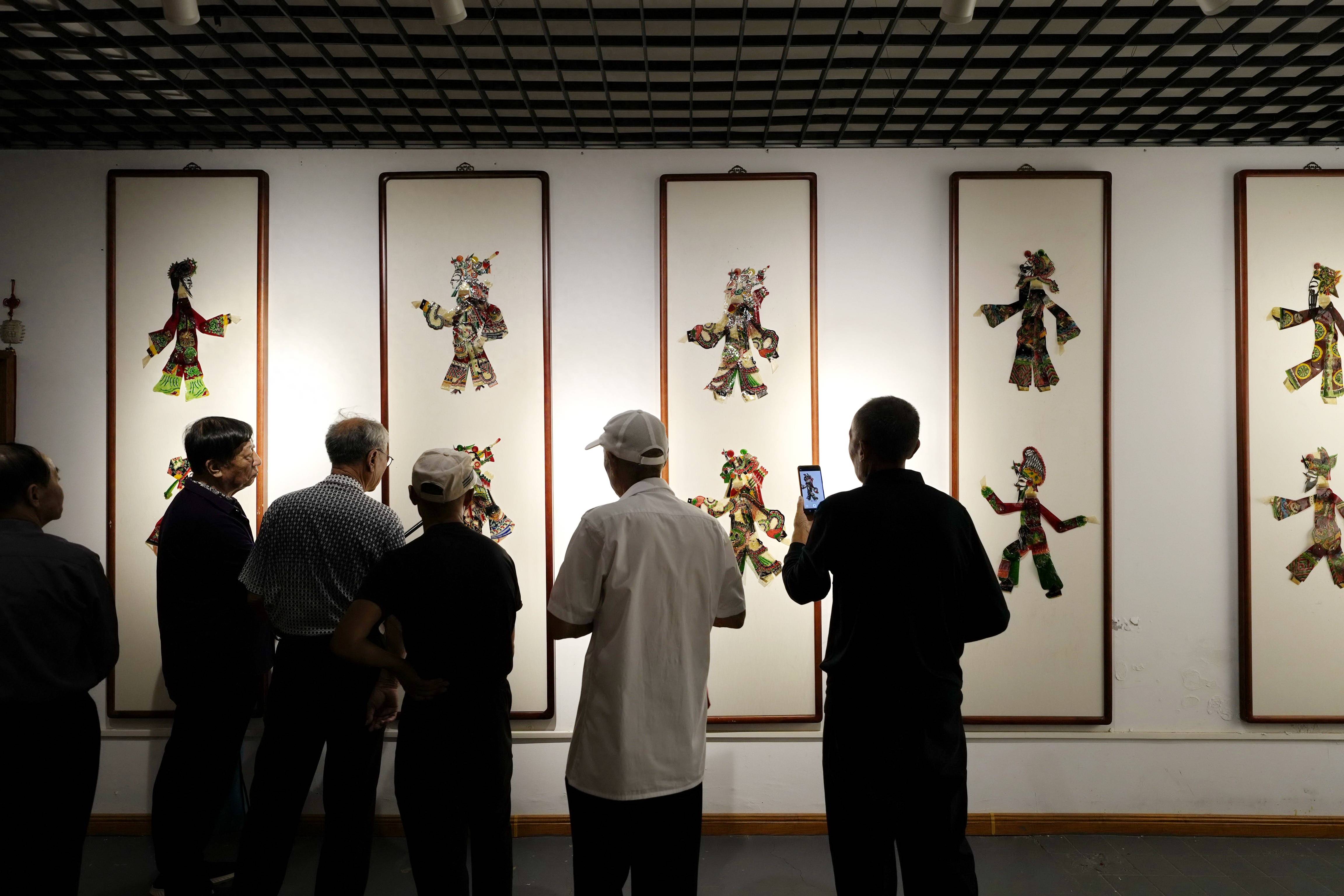 9月16日,市民在玉田县“非遗会客厅”展室内参观展出的皮影人。 新华社记者 牟宇 摄