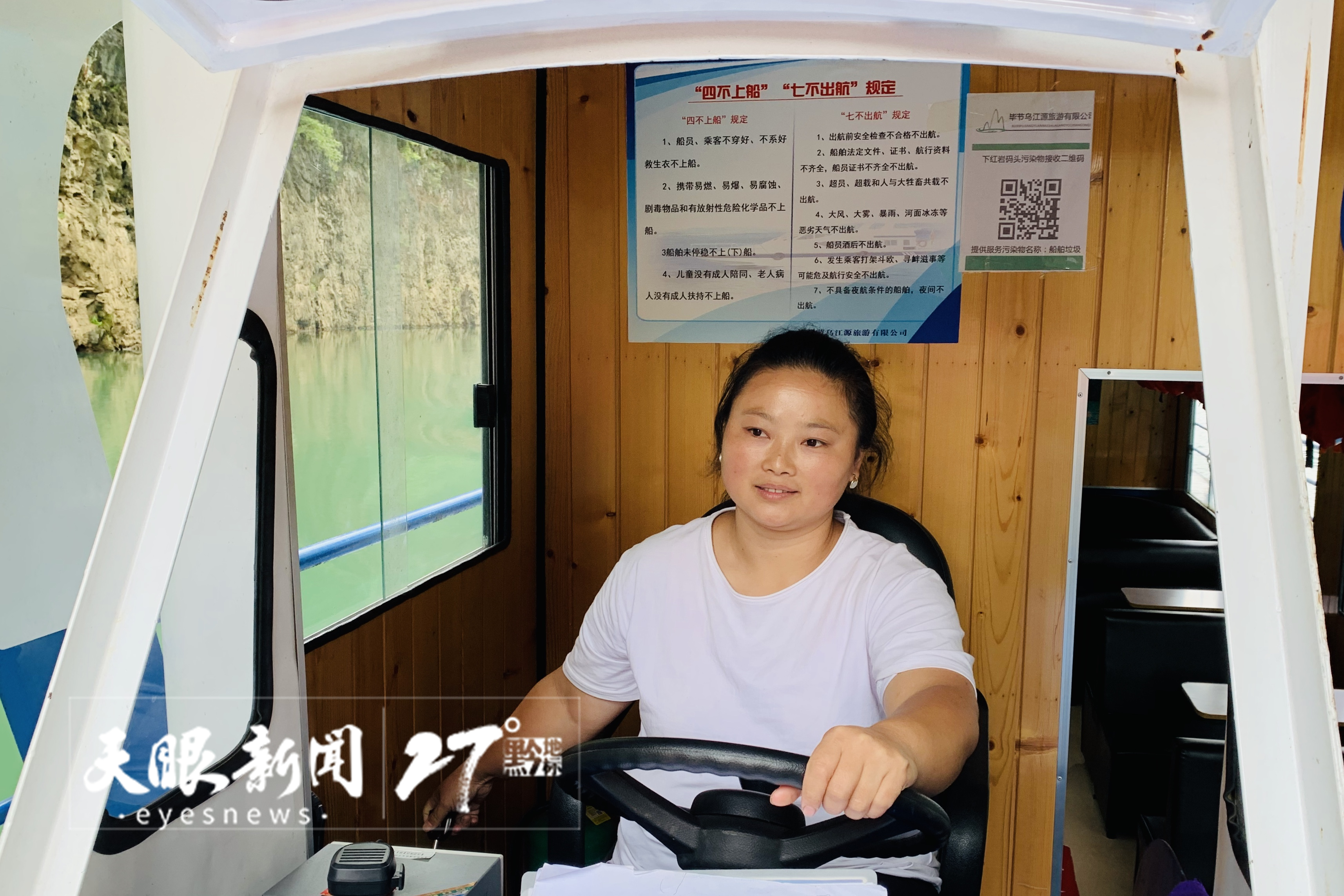 这次回来,还是在她最熟悉的六冲河边,但身份不再是童年无忧无虑戏水亲水的小姑娘,而是乌江源百里画廊游船的一名女船长。