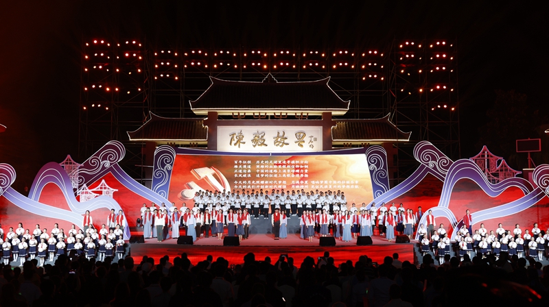 展演的主会场花落资阳市乐至县,这里也是无产阶级革命家、军事家、外交家、诗人陈毅元帅的故乡。资阳历史文化底蕴深厚,考古发现距今35000年前的“资阳人”开启了四川人类文明史。除了陈毅元帅,这里还哺育了东周孔子之师苌弘、西汉辞赋家王褒、东汉经学家董钧等历史名人,以及革命家曹荻秋、著名作家邵子南等现代英杰。当传统佳节和红色故里邂逅,家国情怀升腾在每一位观众心间,“在陈毅故里过中秋,文化传统和家国情交织在一起,这份体验难能可贵!”观众刘译蔓感叹。