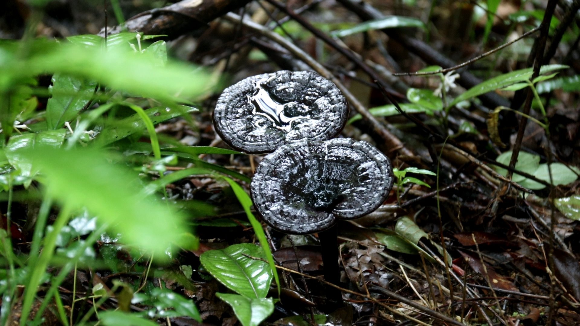 林下长势喜人的灵芝(三都水族自治县融媒体中心供图)