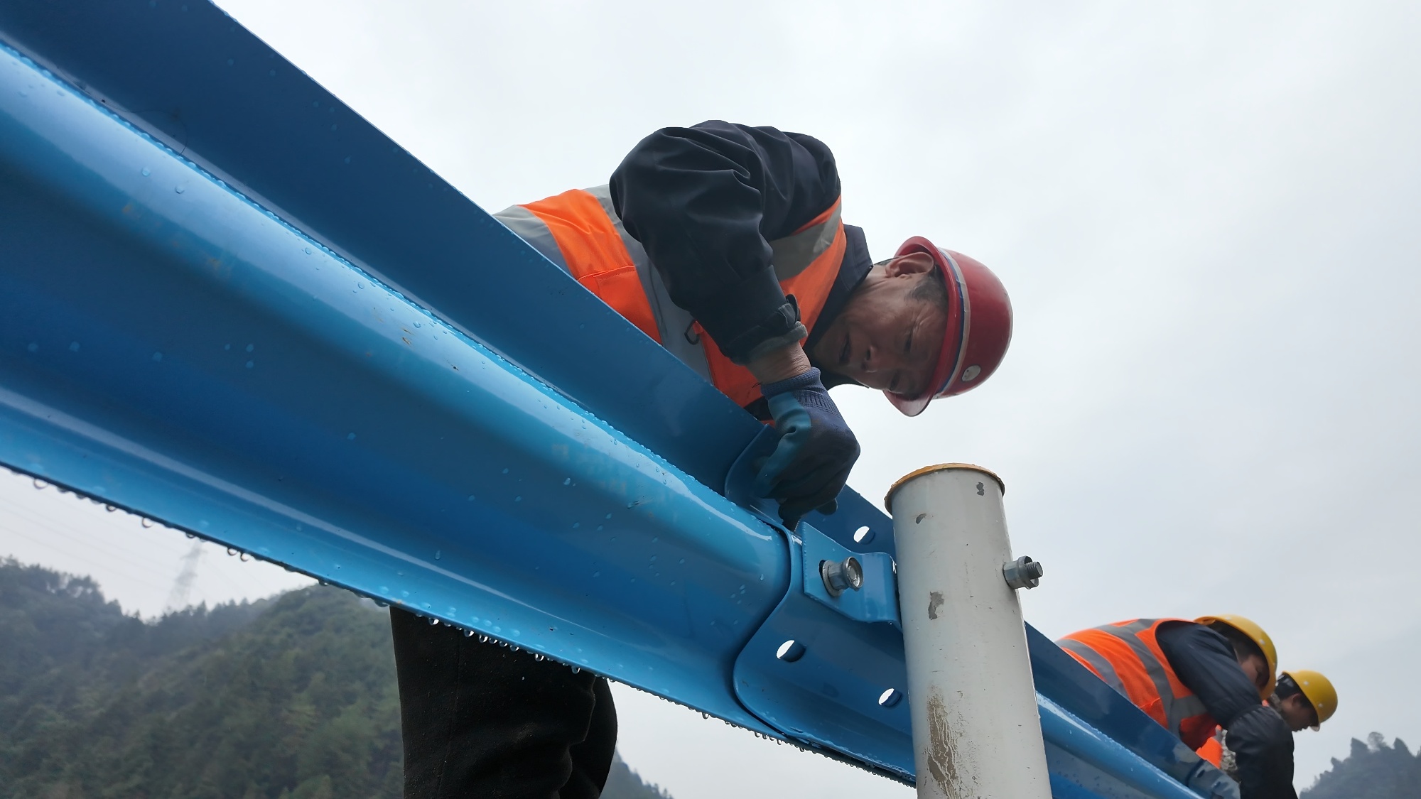 李师傅正在安装防护栏螺栓,手里的扳手一下一下拧得扎实。“每颗螺栓的扭矩都得达标。”他停了一下,像是说给自己听,“这条路往后几十年的安全,其实就藏在这些看不见的缝隙里。”
