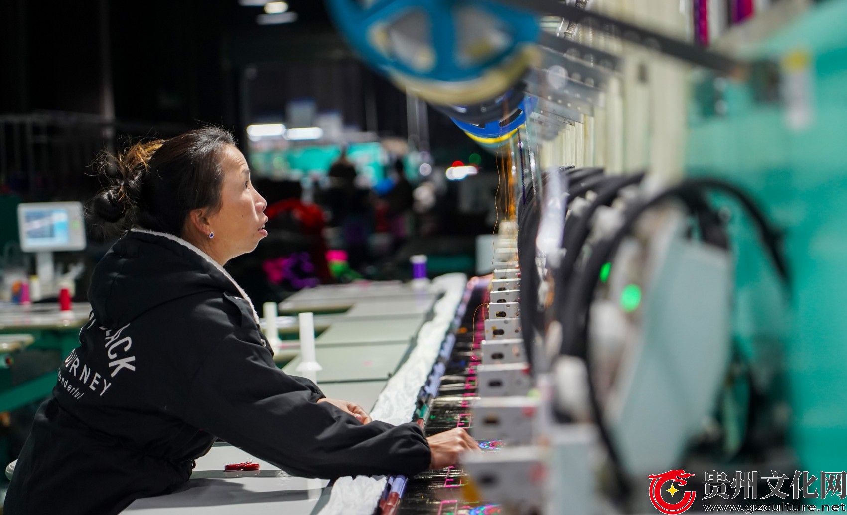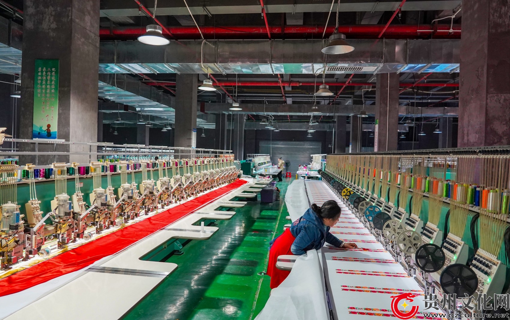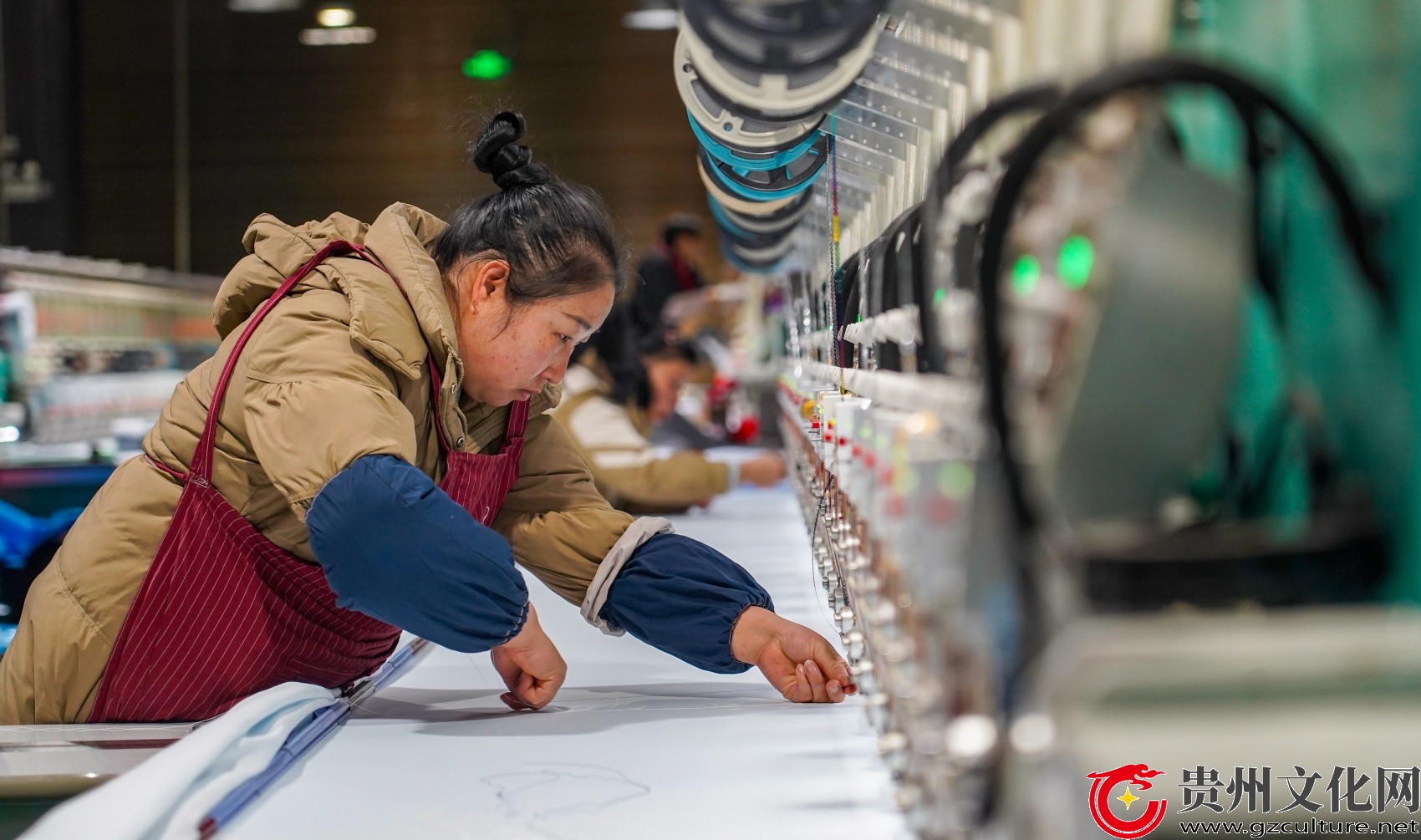 2026年1月9日,在贵州省从江县贯洞镇美娥社区一家刺绣生产车间,工人在赶制刺绣订单产品。(卢忠南 摄)
