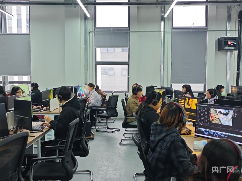 园区内某企业工作人员正在进行影视动画制作(央广网发 周丽 摄)