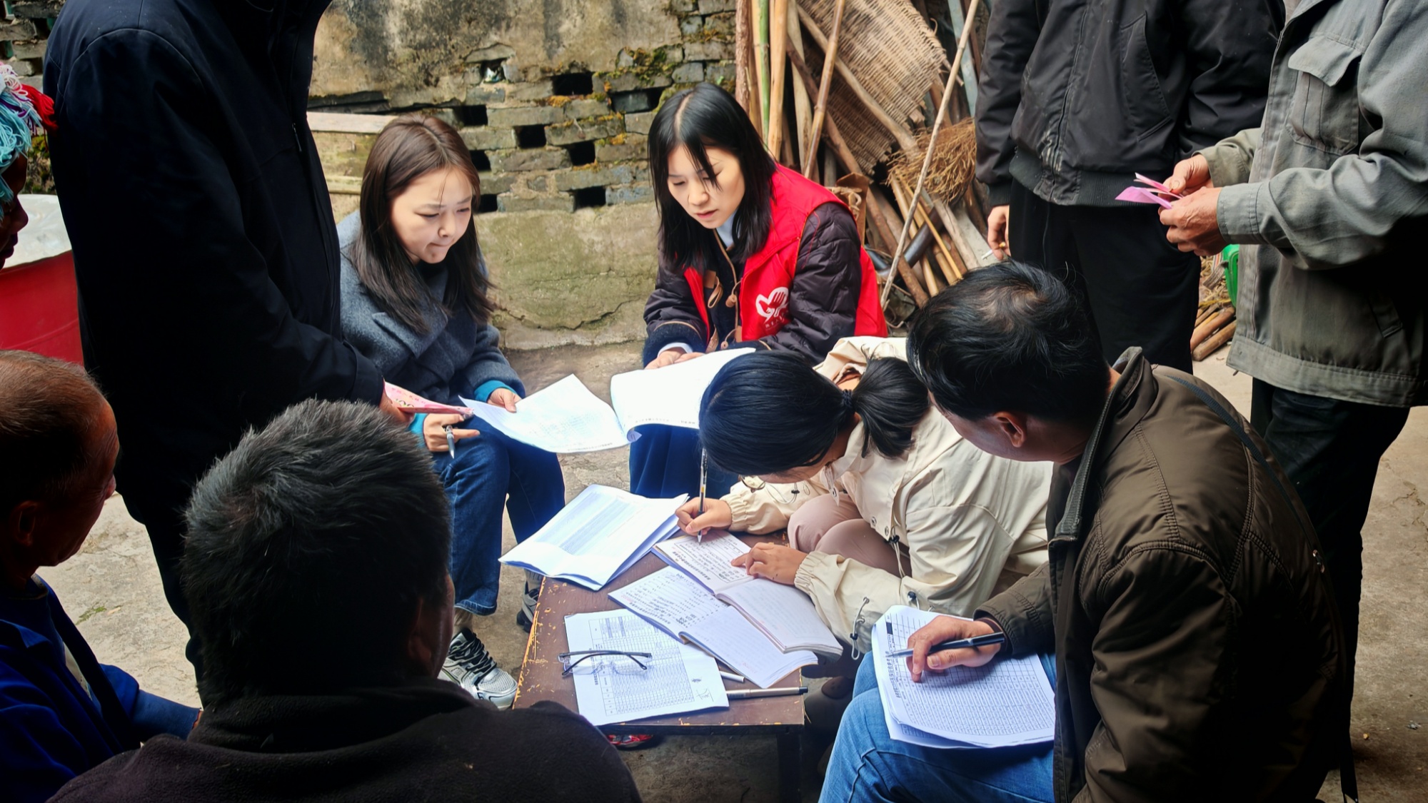 施秉县杨柳塘镇屯上村干部上门征收医保和养老保险(施秉县杨柳塘镇人民政府供图)