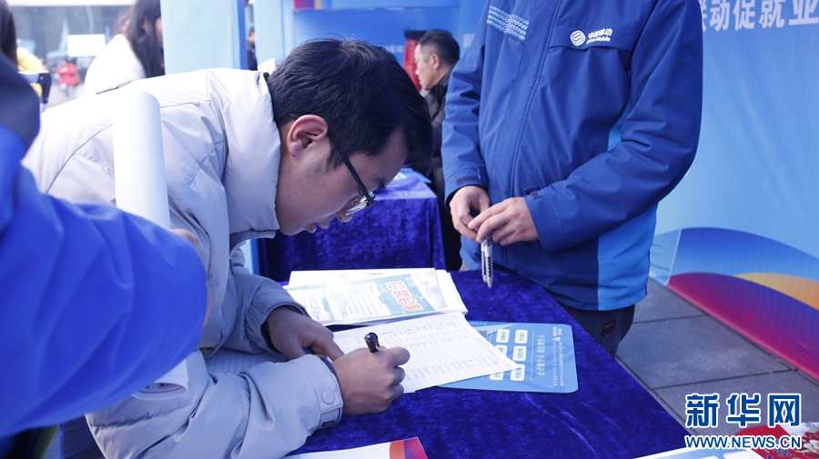 求职者登记个人信息。新华网发(杨馨慧 摄)
