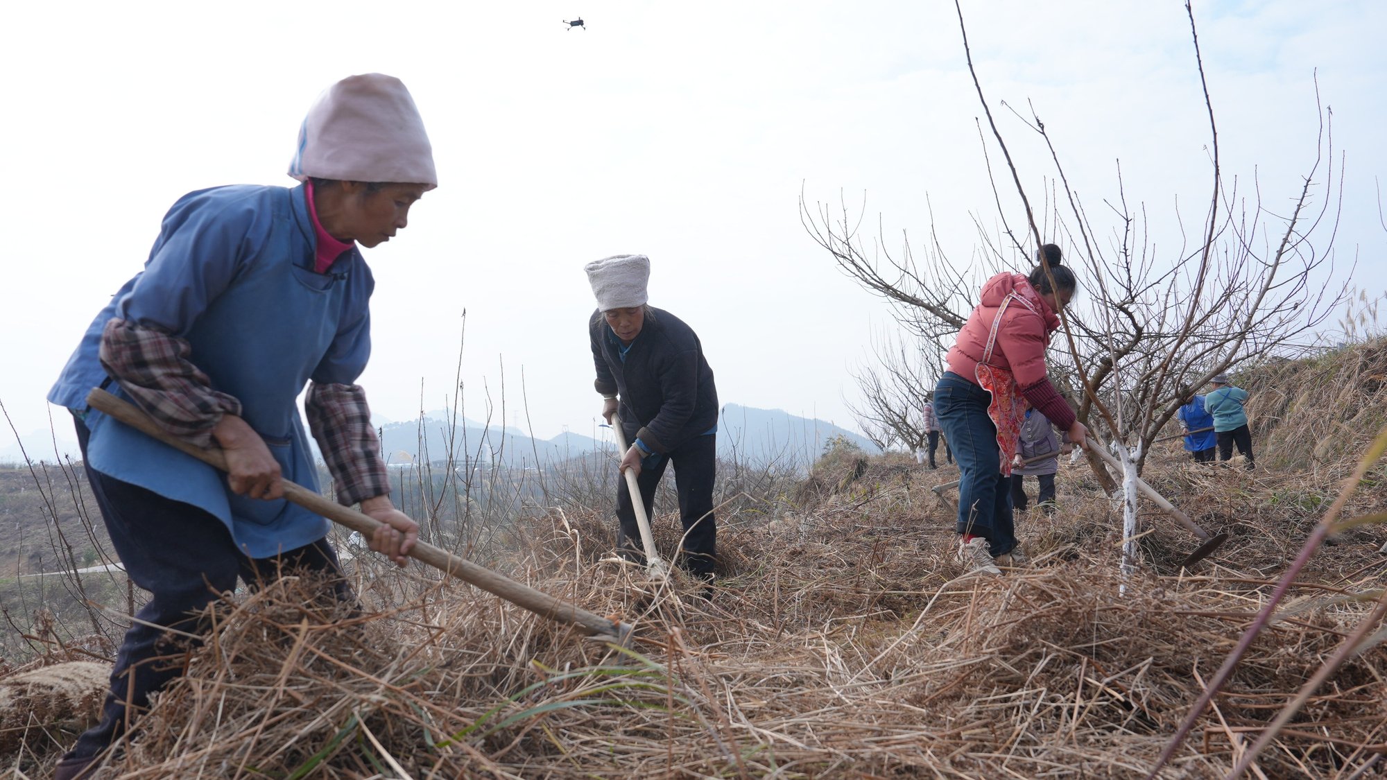 在断杉镇连片的蜂糖李种植基地里,果农们正在对4000多亩果树进行除草、剪枝等冬季管理。精细的修剪有助于优化树形结构,改善通风透光,减少养分消耗,直接影响果实的产量和甜度。