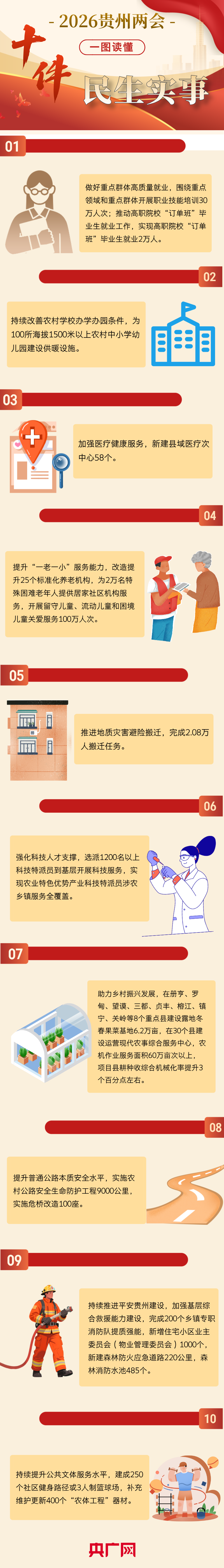 1月27日上午8时,贵州省十四届人大四次会议在贵阳开幕。开幕会上,贵州省人民政府省长李炳军向大会作政府工作报告。报告指出,悠悠万事,民生为大,今年将继续统筹安排财力,扎实办好“十件民生实事”。